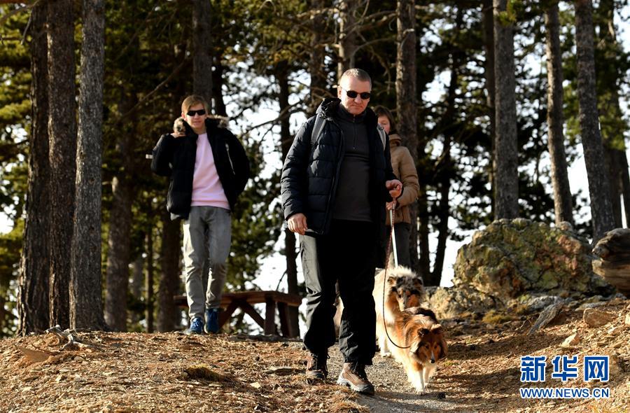 12月25日,在安道尔拉马萨纳附近,人们在山上散步。 新华社记者郭求达摄