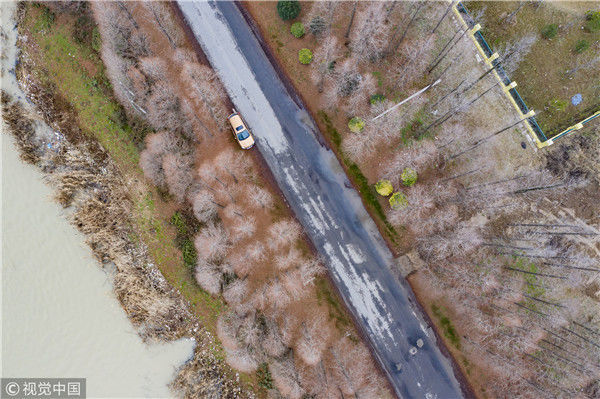 2018年12月27日,江苏淮安,航拍京杭大运河淮安段冬日景色。吴扬/视觉中国
