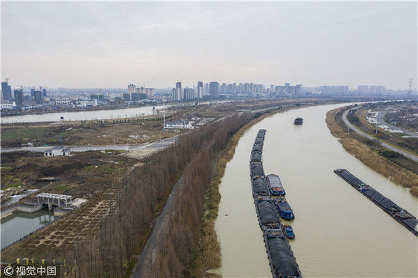 2018年12月27日,江苏淮安,航拍京杭大运河淮安段冬日景色。吴扬/视觉中国