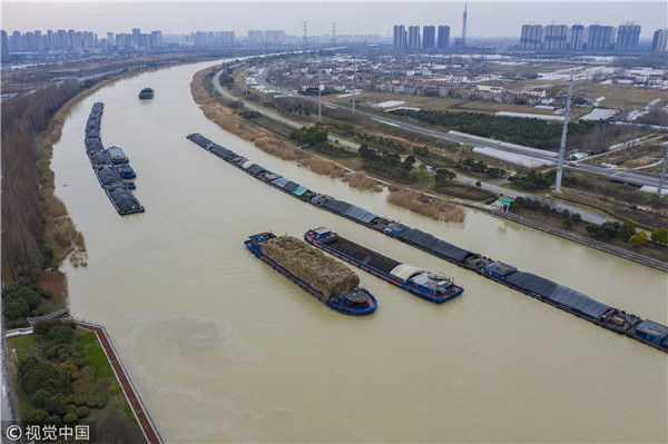 航拍京杭古运河冬景