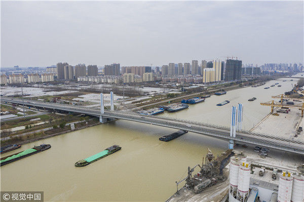 2018年12月27日,江苏淮安,航拍京杭大运河淮安段冬日景色。