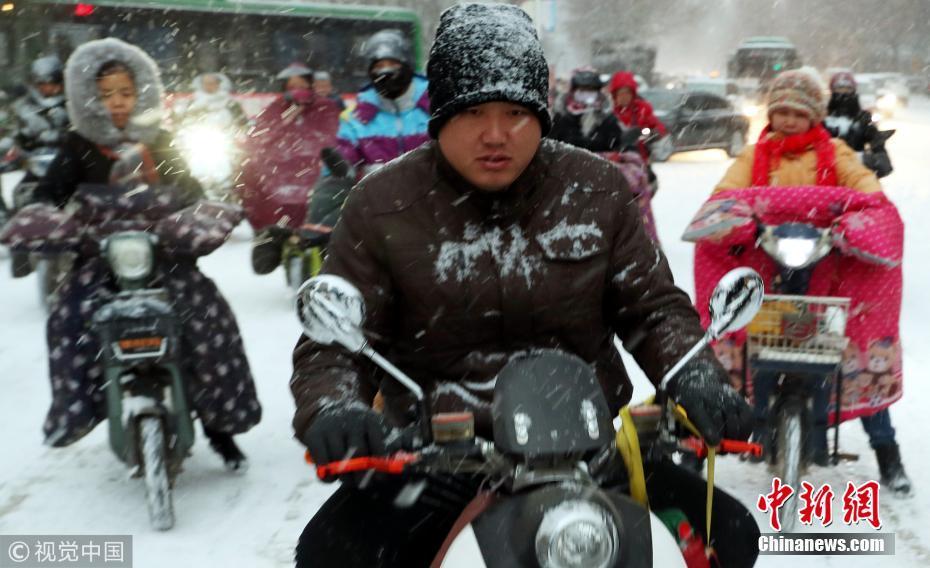 河北石家庄井陉县县城,人们在雪中出行。受多股冷空气的持续影响石家庄出现降雪、降温天气。图片来源:视觉中国