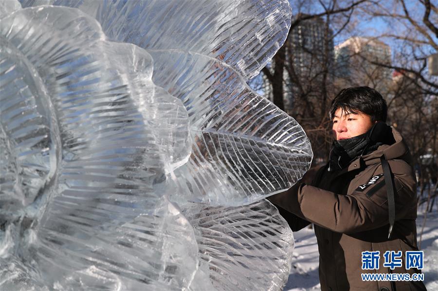 12月27日,选手在比赛中完善冰雕作品。 当日,第十六届黑龙江省大学生冰雕艺术设计创作大赛在哈尔滨兆麟公园落下帷幕,全省高校共有99支队伍参赛。 新华社记者曹霁阳摄