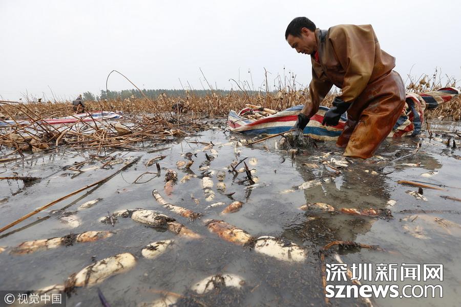 王公平每天泡在冰冷的水中劳动9个小时,挖藕约1000斤,获得酬劳约300元。寒冬时节,安徽省肥西县丰乐镇莲藕种植基地里活跃着不少挖藕人,他们身穿橡胶工作服,在冰冷的水中辛勤工作。