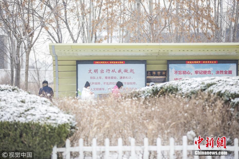 山东滨州发布道路结冰黄色预警信号市区出现较明显降雪,路表温度低于0℃。图片来源:视觉中国