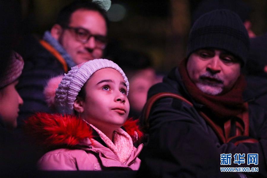 2018年12月31日,在意大利罗马,一名女孩在跨年活动上观看灯光秀。 新华社记者程婷婷摄