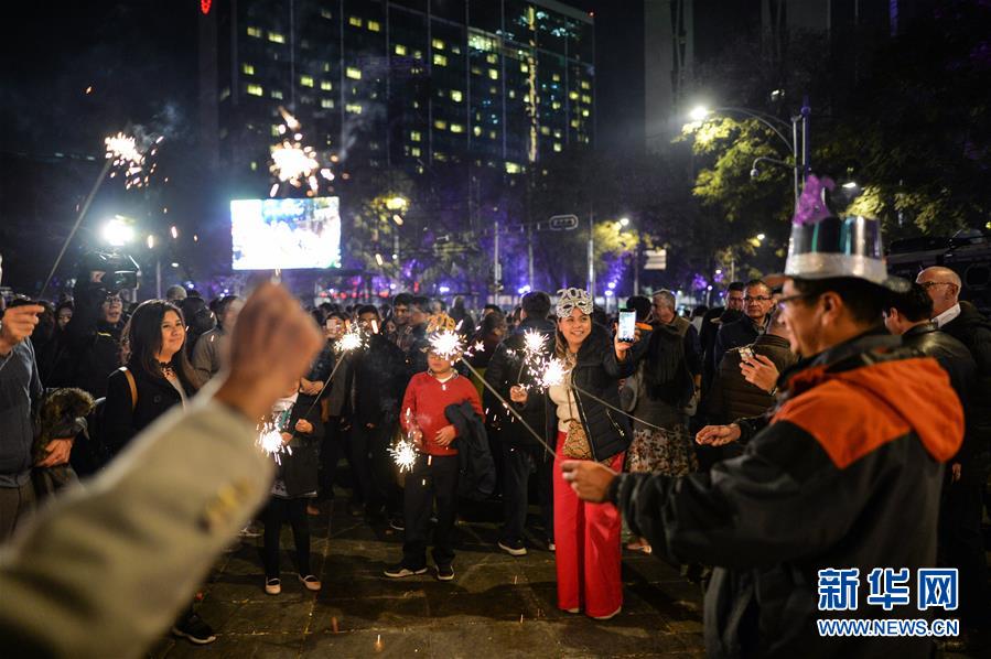 1月1日,人们在墨西哥首都墨西哥城参加跨年活动。 新华社记者辛悦卫摄