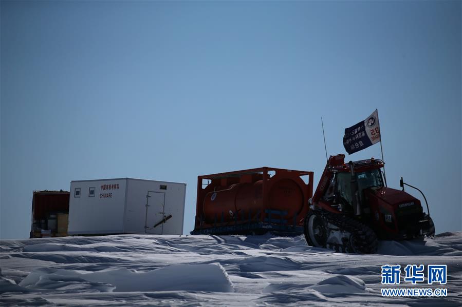昆仑队距离南极中山站990公里处的营地(2019年1月1日无人机拍摄)。