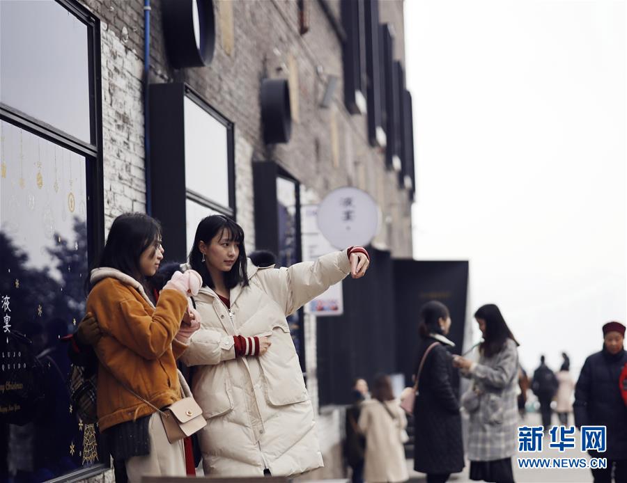 1月1日,游客在重庆鹅岭二厂文艺街区内的一栋由老厂房改建的文艺咖啡馆前自拍。