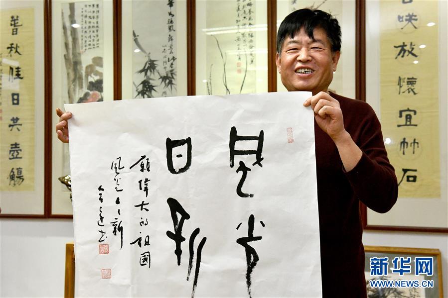 在山东海岱书院,山东大学教授、书法家傅合远用书法作品表达自己2019年的新年愿望:愿伟大的祖国风光日新(2018年12月27日摄)。 新时代是奋斗者的时代,是追梦人的舞台。2019年,万千追梦人朝着新的目标迈进,为实现心中的理想而奋斗。 新华社记者郭绪雷 摄