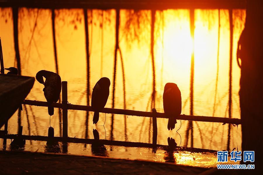 这是雄安新区安新县的居民在白洋淀边晨练(2018年12月7日摄)。新华社记者 邢广利摄