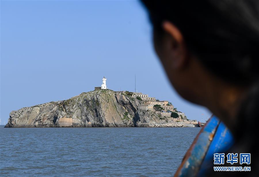 参加完丈夫王继才追悼会的王仕花乘船回岛时眺望开山岛(2018年8月8日摄)。