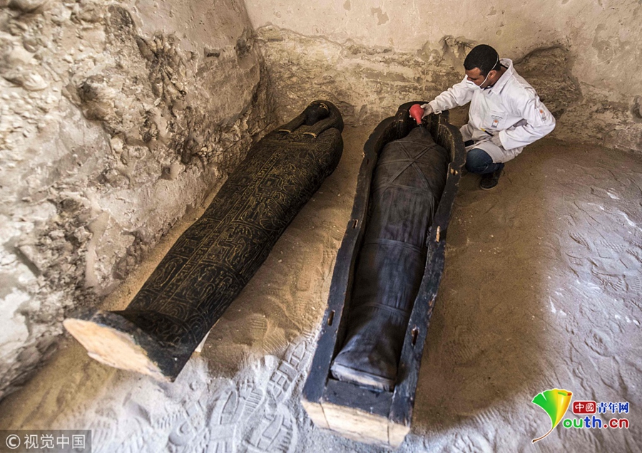 埃及卢克索挖出新墓穴 考古学家现场“开棺见尸”