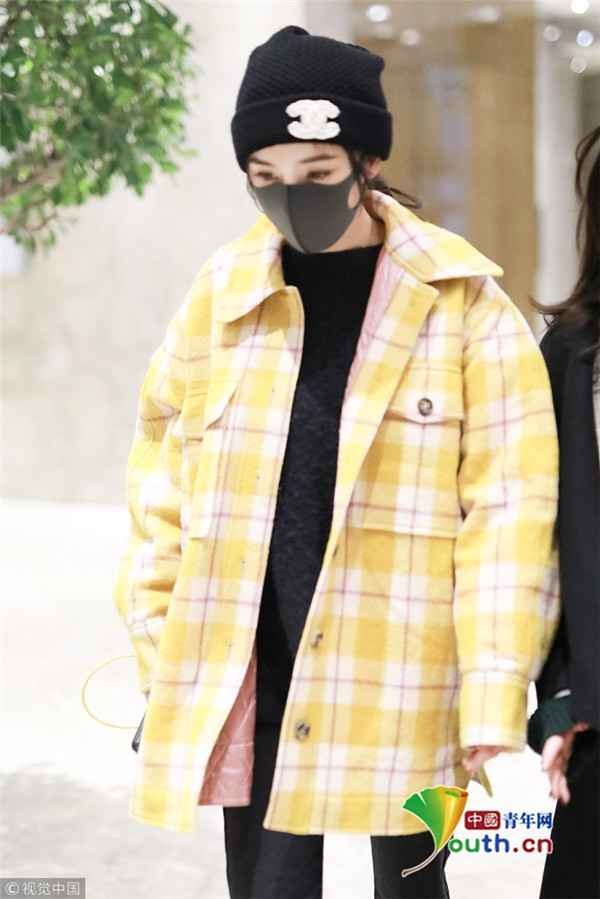 2018年1月6日,上海,杨幂现身某酒店。她戴着帽子口罩,身穿黑色套装,而外面搭配的奶黄格子外套却瞬间减龄,明亮又惹眼,无惧寒冬露着纤细脚踝,依旧是那个很会穿搭的大幂幂。