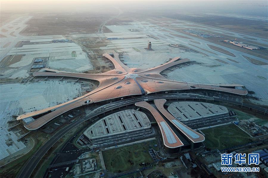 俯瞰北京大兴国际机场(2018年12月29日无人机拍摄)。 岁末年初,寓意“凤凰展翅”的北京大兴国际机场航站楼外立面装修工程全面完成,正式对外完整亮相。“航站楼内部精装修和设备安装已完成80%;高速公路主体结构工程基本完工;综合管廊正加快推进建设……”1月3日,北京市发展改革委对外公布北京大兴国际机场及其配套设施建设的最新进展。 新华社记者 鞠焕宗 摄