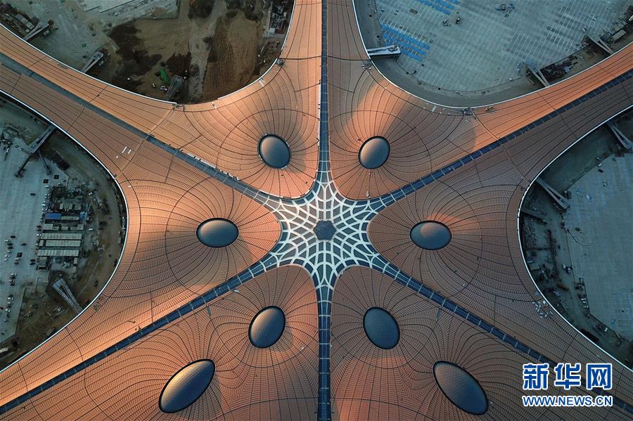 航拍北京大兴国际机场最新施工进度 现代设计感十足