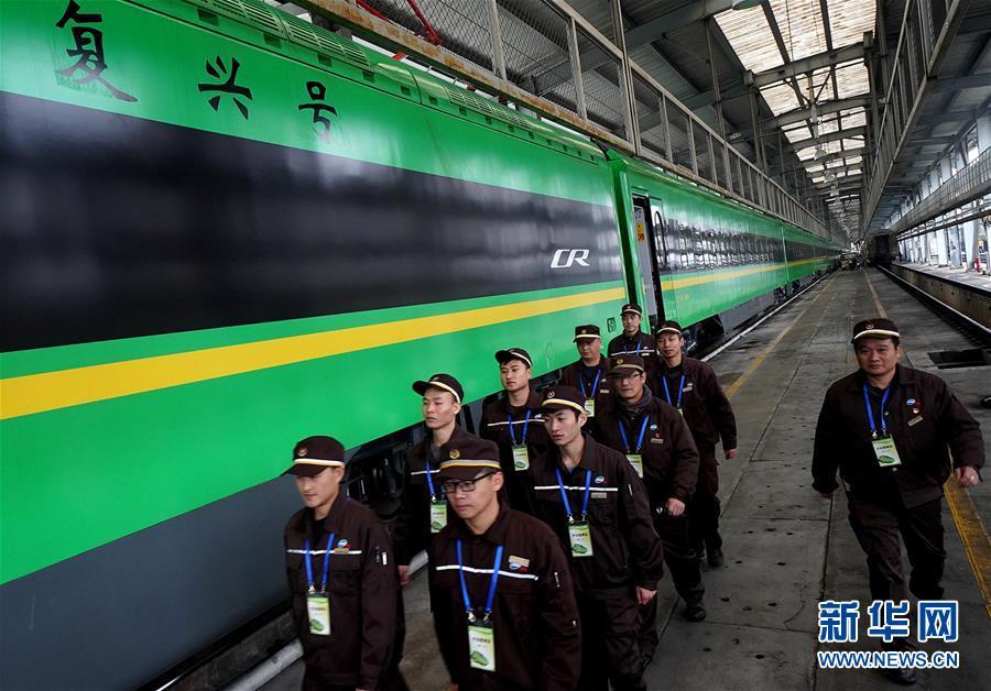日前,被昵称为“绿巨人”的新型时速160公里动力集中动车组——CR200J型“复兴号”列车正在中国铁路上海局集团有限公司上海车辆段进行运行前的静态和动态检测。据悉,该型号动车组将在2019年春运前夕上线运行,同高铁形成优势互补,为旅客提供差异化服务。 新华社记者 陈飞 摄