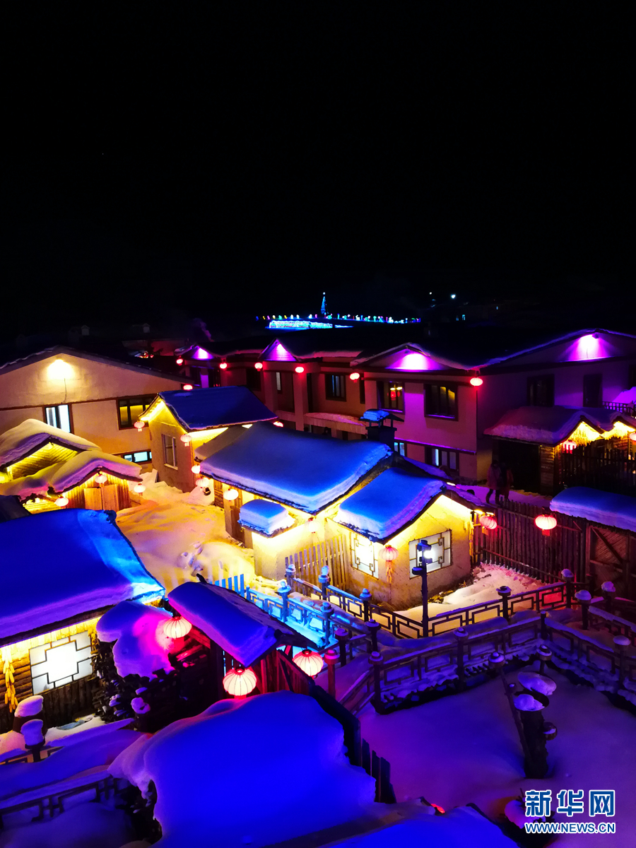 1月3日,灯光映照下的雪乡一角。 新华网记者 张明宇 摄