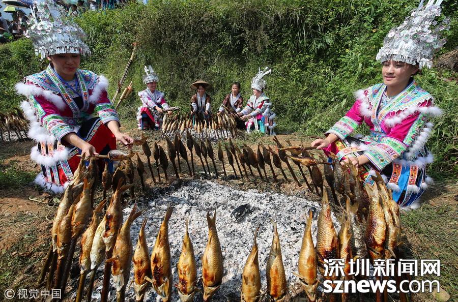 2018年11月19日,侗族同胞在参加贵州省从江县庆云镇“冻鱼节”祭萨仪式。 据了解,“冻鱼节”是当地“石氏”侗族同胞特有的祭祀传统节日,定在每年农历的10月12日,是人们纪念祖先迁徙而举办的规模盛大的节日,至今已有500多年的历史。节日期间,主人邀请亲友聚餐、参与庆祝活动,共享丰收喜悦。