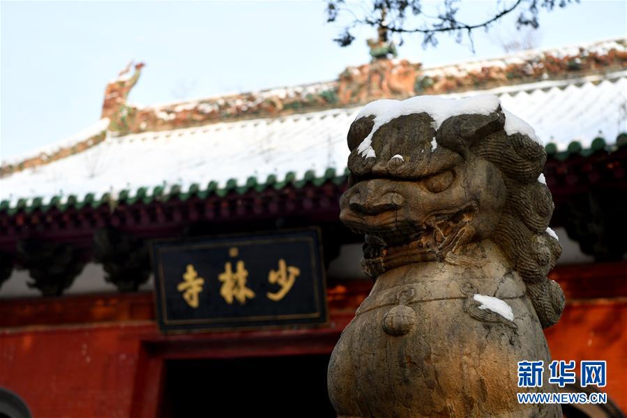 1月10日无人机拍摄的少林寺一景。当日,雪后初霁,河南登封少林寺分外秀美。新华社记者 李嘉南 摄
