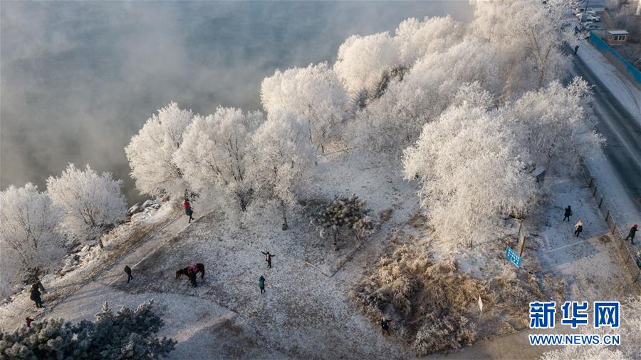 这是在吉林省吉林市丰满区吉丰东路松花江畔拍摄的雾凇美景(12月12日无人机拍摄)。 新华社记者张楠摄
