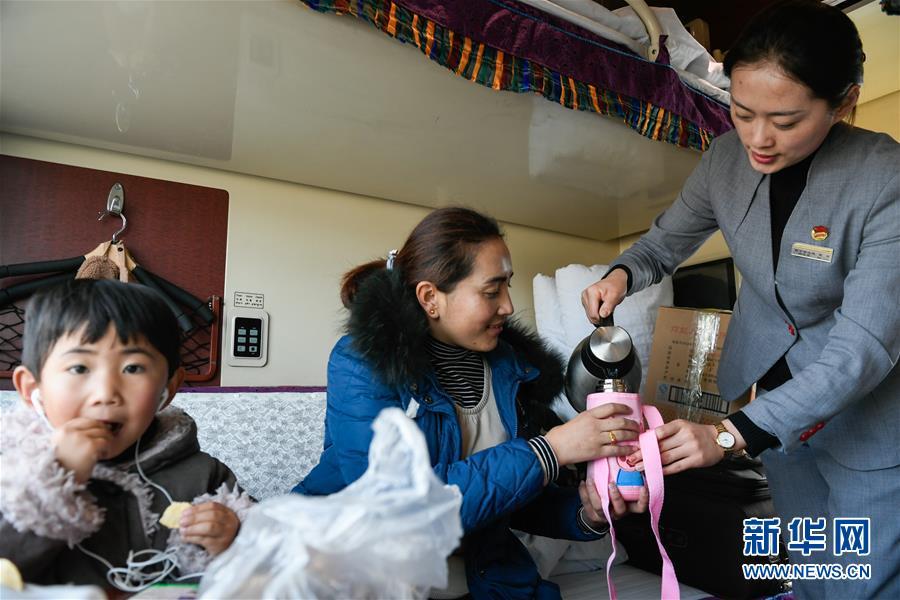 春运临近,西藏铁路客流逐渐增大。从拉萨发往西宁的中国铁路青藏集团公司西宁客运段Z6802次旅客列车满载着游客、务工人员、学生、朝佛信众等,穿梭在白雪皑皑的高原上。
