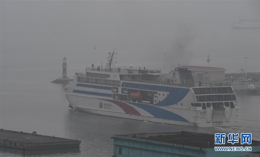 1月13日,一艘客滚船从海口秀英港驶出。 新华社记者杨冠宇摄