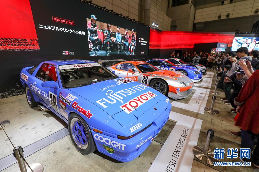 1月13日,在日本千叶东京汽车沙龙现场,丰田公司展出的历代赛车吸引大批观众。 新华社记者 马曹冉 摄
