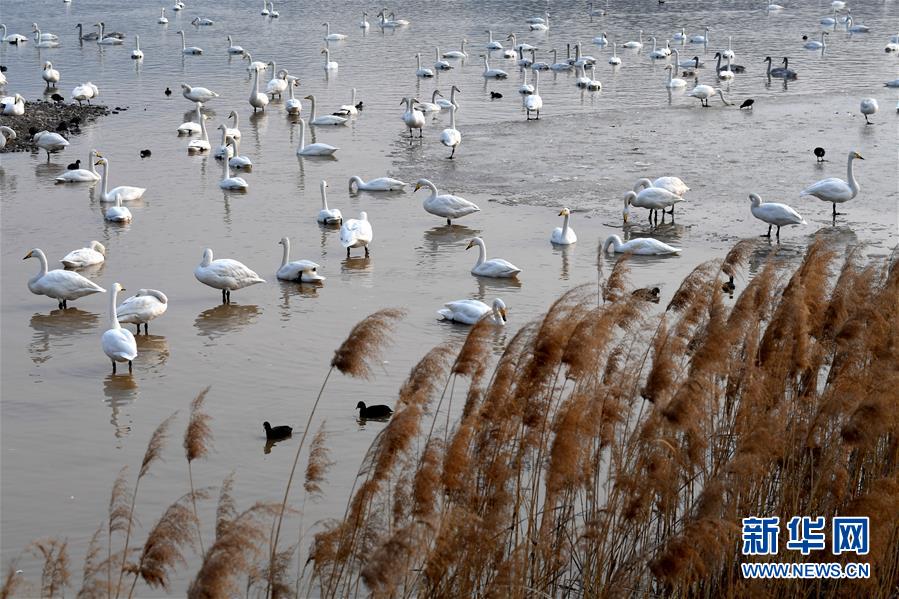 1月3日,白天鹅在三门峡黄河湿地栖息。 新华社记者王丁摄