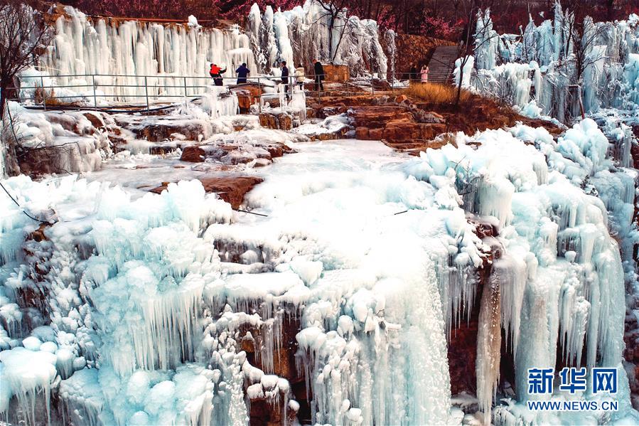 1月12日,游客在涉县太行五指山景区观赏冰瀑。新华社记者王晓摄
