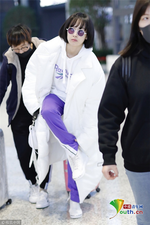 1月15日,上海,宋茜现身机场。她身穿白色羽绒服搭配紫色运动裤造型清爽有型,梳着齐耳短发秒变妹妹头,可爱吸睛。抬腿扯裤腿动作呆萌,难道是秋裤没穿好,要扯一下,这动作也是非常接地气了。