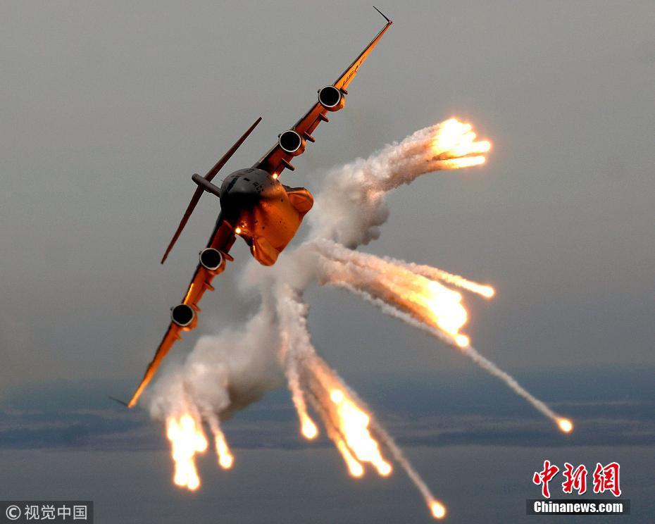 日前,美国军队官方出版社《Airman》杂志评选出2018年度最具震撼力的美国空军照片。图为美国南卡罗来纳州查尔斯顿,一架C-17“环球霸王III”在释放干扰弹。图片来源:视觉中国