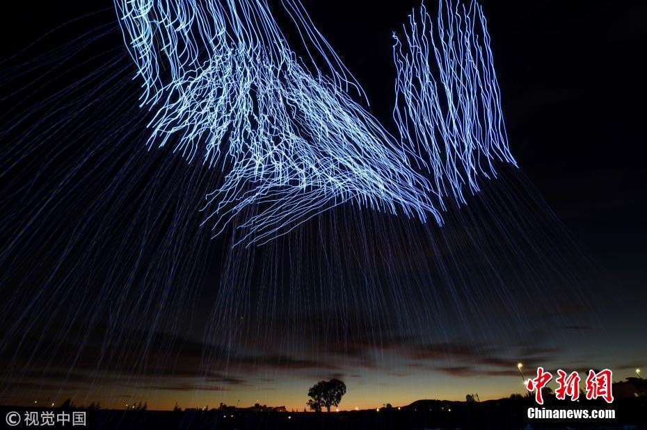 日前,美国军队官方出版社《Airman》杂志评选出2018年度最具震撼力的美国空军照片。图为美国加利福尼亚州特拉维斯空军基地,500架无人机进行空中灯光秀。美国空军军士克里斯蒂安.康莱德用延时摄影的办法,拍下了这精彩的瞬间。图片来源:视觉中国