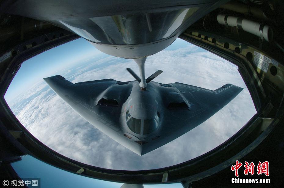 日前,美国军队官方出版社《Airman》杂志评选出2018年度最具震撼力的美国空军照片。图为美国空军一架B-2型“幽灵”(Spirit)轰炸机在进行空中加油。图片来源:视觉中国