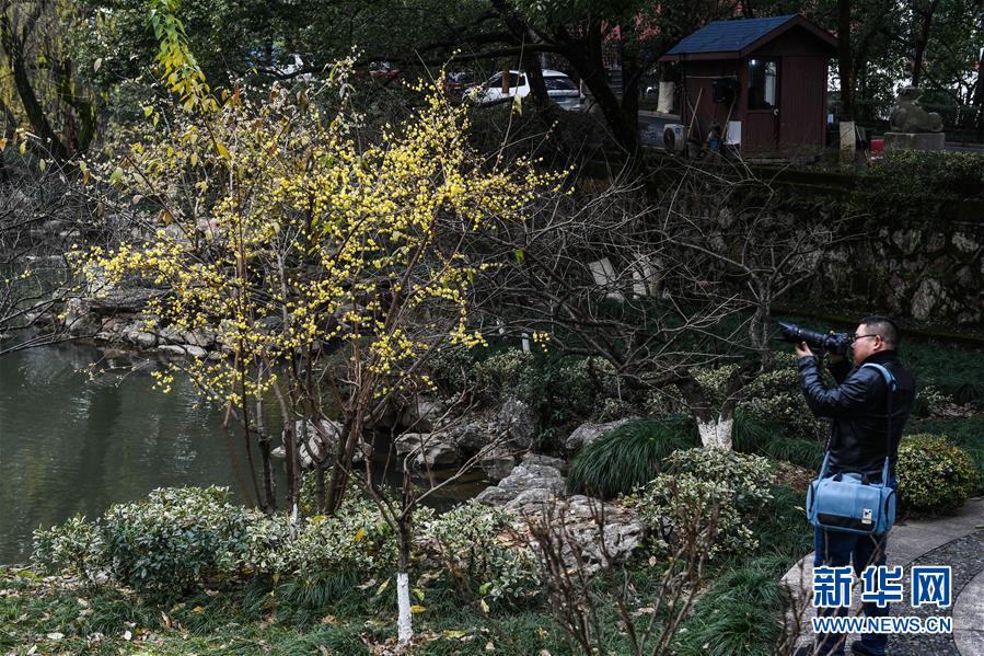 1月16日,游客在超山景区内拍摄盛开的腊梅花。 临近春节,浙江省杭州市余杭区超山景区内的寒梅凌冬开放,黄色的腊梅已处处飘香,白梅和红梅星星点点绽放在枝头,大部分的梅花还处于“含苞待放”的状态。据悉,杭州余杭超山景区的探梅期从1月中旬开始将一直延续到3月,春节期间将进入最佳赏梅期。 杭州市余杭区超山景区以梅景而出名,为江南三大探梅胜地之一。花开时节方圆十里如飞雪漫空,故有“十里梅花香雪海”之美誉。超山梅花已有1000多年的种植历史,品种很多,有白梅、红梅、绿萼梅,以白梅居多。 新华社记者 徐昱 摄