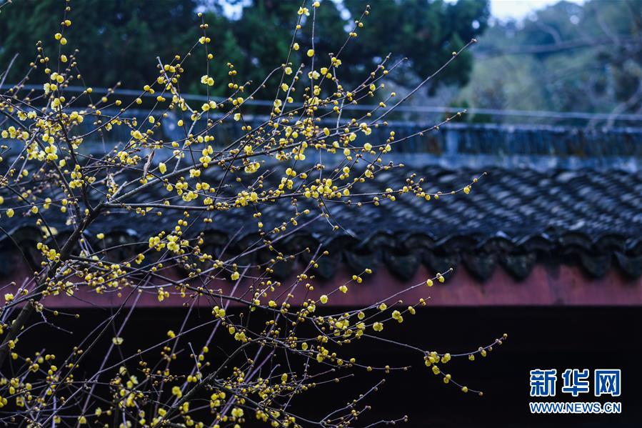 超山景区内盛开的腊梅花(1月16日摄)。 临近春节,浙江省杭州市余杭区超山景区内的寒梅凌冬开放,黄色的腊梅已处处飘香,白梅和红梅星星点点绽放在枝头,大部分的梅花还处于“含苞待放”的状态。据悉,杭州余杭超山景区的探梅期从1月中旬开始将一直延续到3月,春节期间将进入最佳赏梅期。 杭州市余杭区超山景区以梅景而出名,为江南三大探梅胜地之一。花开时节方圆十里如飞雪漫空,故有“十里梅花香雪海”之美誉。超山梅花已有1000多年的种植历史,品种很多,有白梅、红梅、绿萼梅,以白梅居多。 新华社记者 徐昱 摄