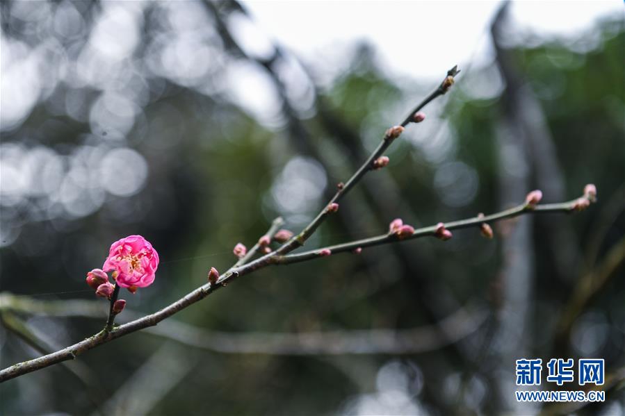 1月16日,超山景区内一朵红梅在枝头绽放。 临近春节,浙江省杭州市余杭区超山景区内的寒梅凌冬开放,黄色的腊梅已处处飘香,白梅和红梅星星点点绽放在枝头,大部分的梅花还处于“含苞待放”的状态。据悉,杭州余杭超山景区的探梅期从1月中旬开始将一直延续到3月,春节期间将进入最佳赏梅期。 杭州市余杭区超山景区以梅景而出名,为江南三大探梅胜地之一。花开时节方圆十里如飞雪漫空,故有“十里梅花香雪海”之美誉。超山梅花已有1000多年的种植历史,品种很多,有白梅、红梅、绿萼梅,以白梅居多。 新华社记者 徐昱 摄