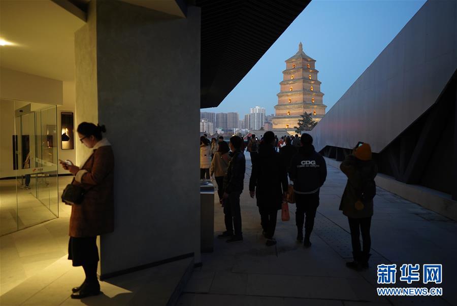 这是从一家商业综合体观景平台上拍摄的大雁塔(2018年12月16日摄)。 随着时代发展,西安著名历史遗迹大雁塔的周边商圈也历经变迁。通过近年来的改造提升,大雁塔商圈如今焕然一新,新潮时尚的大型商业综合体和商业街区为古老的大雁塔注入了现代活力,也为来大雁塔游玩的游客提供了更好的旅游体验。 新华社记者 邵瑞 摄