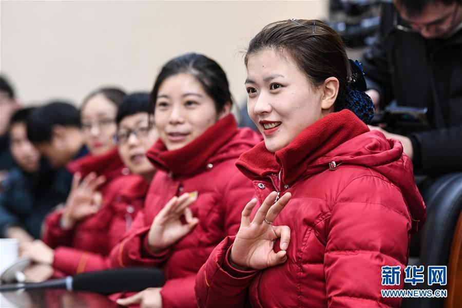 1月16日,指导老师在对鹤壁东站的职工进行手语培训。 当日,中国铁路郑州局集团有限公司新乡车务段鹤壁东站组织职工开展服务礼仪、手语等业务培训,并进行非正常情况应急演练,为2019年春运做准备。 新华社记者李安摄