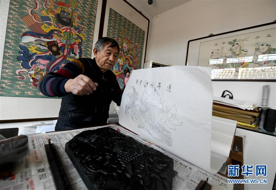 临近春节,作为国家级非物质文化遗产杨柳青年画的代表性传承人霍庆顺在天津玉成号画庄忙碌着赶制年画。 霍庆顺说:“制作杨柳青年画,一定要守住勾、刻、印、绘、裱五道工序的纯手工制作;年画最终还是要有人喜欢有人用,我很支持发展年画衍生品。” 天津西青区共有年画从业人员2000多人,年画作坊72家,年画衍生品创作研发16个类别182个品种,年销售额5000余万元。