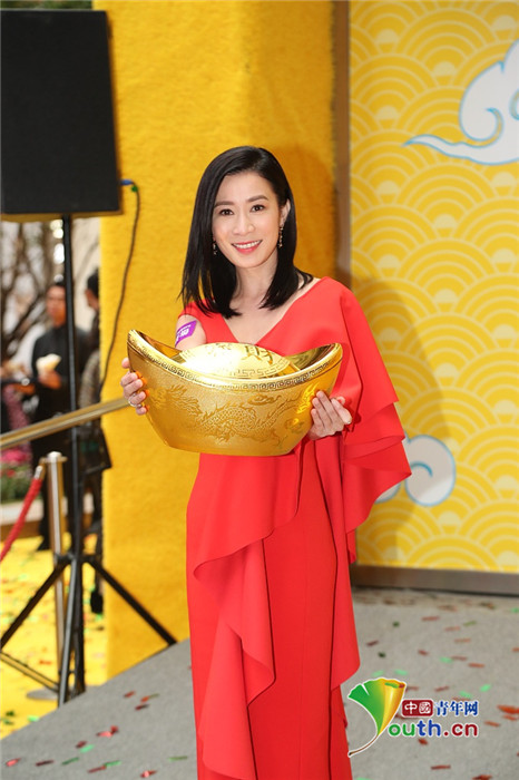 佘诗曼抱金元宝灿笑元气又喜庆 回应蛇精脸滤镜笑言被吓到
