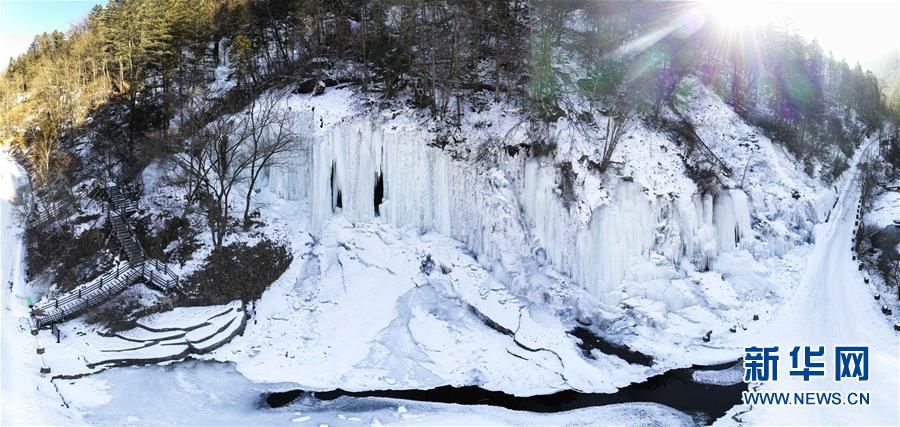 位于吉林省长白县的十五道沟望天鹅风景区,属长白山余脉。这里生态原始,古树参天,瀑飞泉涌,怪石嶙峋,素有“北方九寨沟”的美誉。 冬日里,在形态各异的岩墙、岩柱间流淌的溪水因低温凝固,仿若时间冻结,一切流动的美便以湍急之势凝于石壁,形成了半冰半水、亦静亦动的冰瀑景观,尽显大自然的鬼斧神工。 新华社记者张楠摄