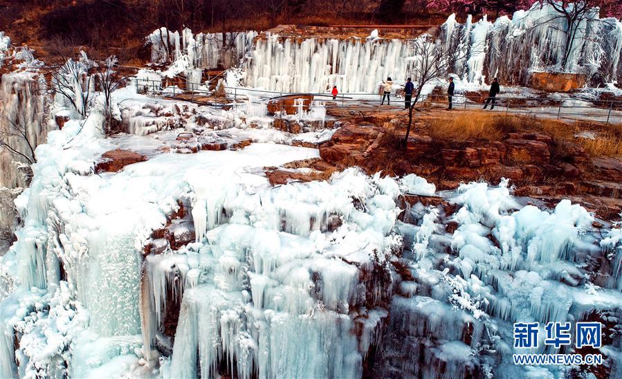 1月12日,游客在涉县太行五指山景区内游览。新华社记者王晓摄