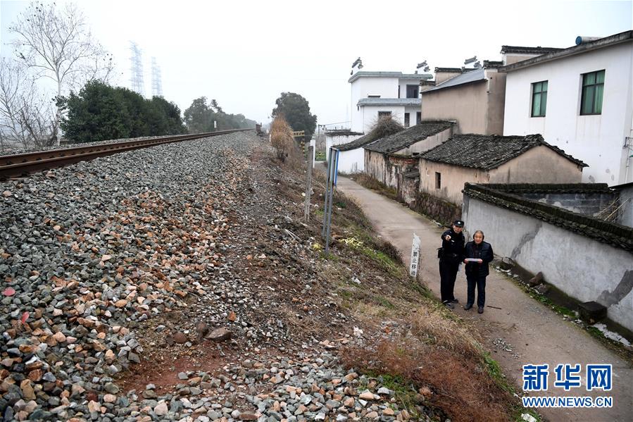 1月16日,汪茂才向铁路沿线村民宣传铁路安全知识。 今年52岁的汪茂才是合肥铁路公安处黄山站派出所歙县警务室的一名线路民警,他所在的警务室负责皖南山区皖赣铁路线约80公里范围内的线路安全。从警30年来,线路巡查、铁路安全知识宣传等是汪茂才的日常工作。多年来的徒步巡线,让汪茂才练就了一双快腿,十公里的路,汪茂才两个小时就能走完。 汪茂才负责的铁路沿线周边村庄较多,很多房子都是沿铁路线而建,有些村民为了图方便,违规穿越铁路线。加强对铁路沿线居民的安全宣传教育,成为汪茂才的一项重要工作,沿线村民的安全意识也越来越高。 对汪茂才这样的线路民警来说,大多数时候都是“独行侠”,“当线路民警就要耐得住寂寞,守得住孤独,与大山为伴,与线路为友,尽己所能,为铁路安全运行保驾护航。”汪茂才说。 新华社记者刘军喜摄