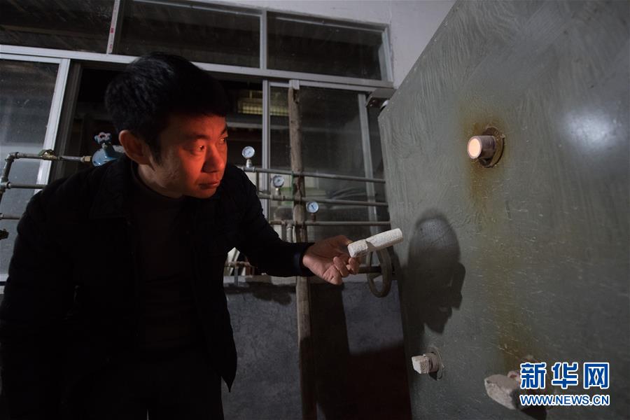 1月15日晚,陈卫武在烧窑期间查看窑内情况。新华社记者翁忻旸摄