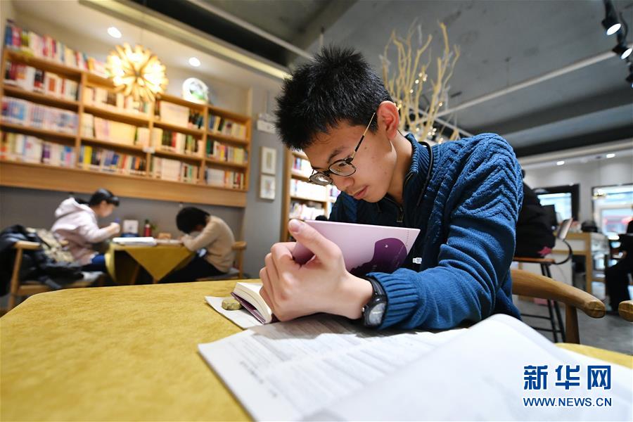 1月17日,学生在甘肃省兰州市西固区福利路街道“读者小站”里阅读。