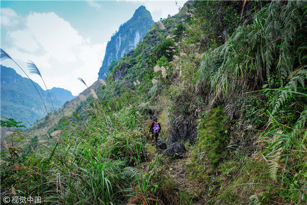 2018年12月21日,广西河池。这段本来没有的路,是戈英屯村民常年累月踩出来的。