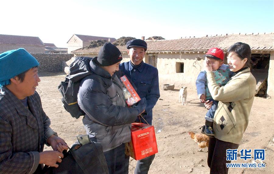 2002年2月10日,外出打工的褚明东(左二)在腊月二十九回到家乡河北省张北县米家沟村,父母、妻女早早地等在家门口。