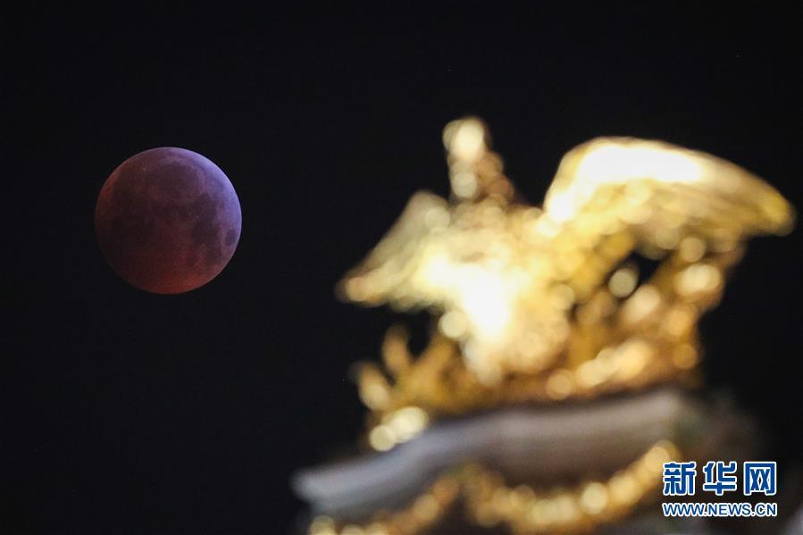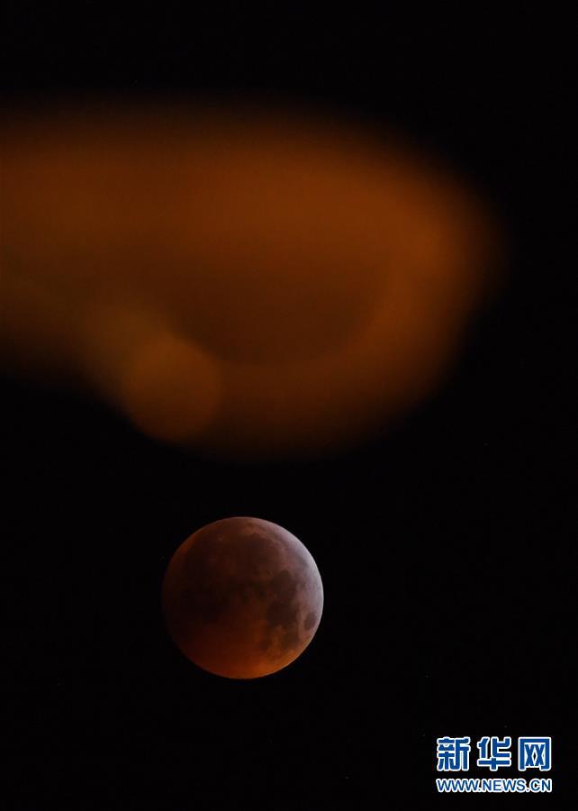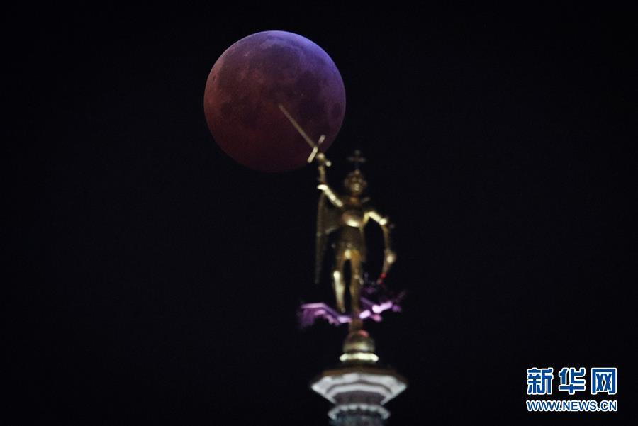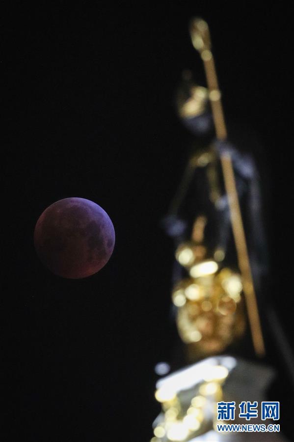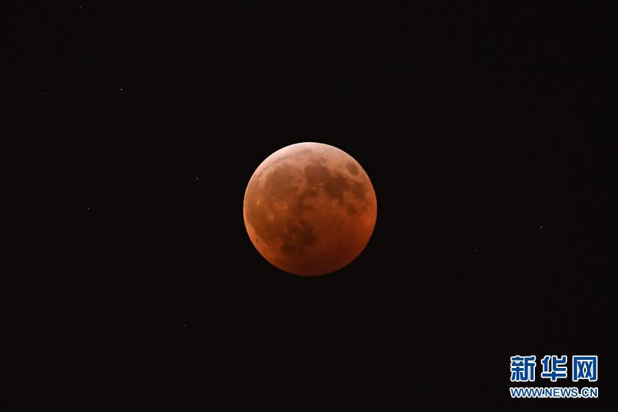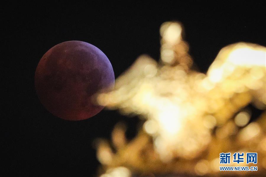 这是1月20日在墨西哥首都墨西哥城拍摄的“超级红月亮”。 1月21日迎来2019年第一个月圆之夜,新年首次“超级月亮”现身天宇。巧合的是,当日还发生一场“月全食”奇观。因此,这一天的月亮也被称为“超级红月亮”。 新华社记者辛悦卫摄