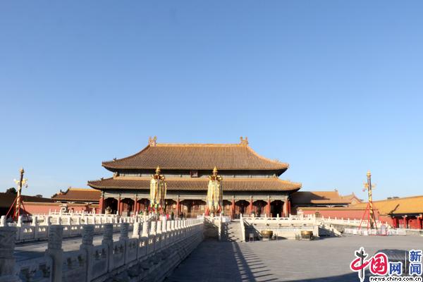 2019年1月21日,故宫博物院在乾清宫前丹陛上下树立起“天灯”和“万寿灯”各一对,作为“贺岁迎祥——紫禁城里过大年”展览的实景体验部分正式向观众开放。 中国网记者 苏向东/摄
